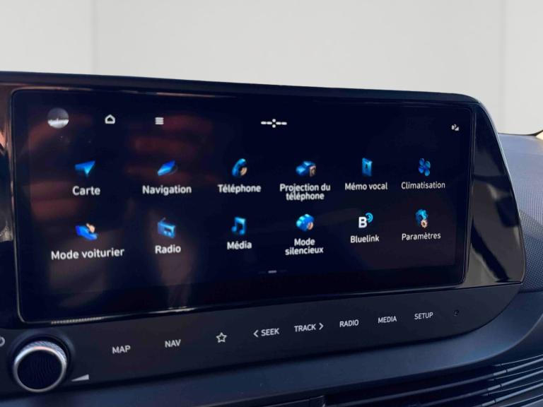 - Services connectés BlueLink avec carte SIM incluse: Transmission de destination au système de navigation à distance - Géolocalisation du véhicule - Historique des trajets - Statut du véhicule (portes, moteur, ventilation) - Diagnostic Services Bluelink PRO offerts pendant 6 mois et services Bluelink LITE offerts pendant 10 ans après la date de mise en circulation du véhicule. Les fonctionnalités à distance s'effectuent via l'application depuis un téléphone compatible, hors frais de connexion.