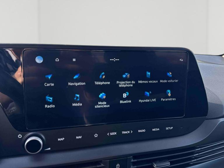 - Système de navigation Europe avec programme de mise à jour à distance et services Hyundai Live: information trafic, carburants, emplacements de stationnement, météo, points d'intérêt et zones de danger. Mises à jour à distance incluses pendant 3 ans.